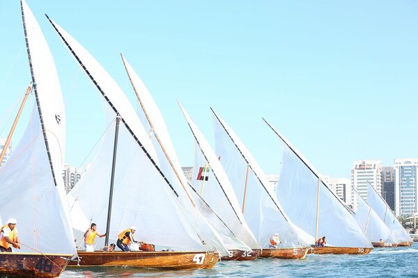 Al Bwanish is one of the old traditional races, which people used it for fishing and sailing on shallow water. It has a unique way in making it, which is made of one wooden board from trees trunks. The size of the boat depends on the tree trunk size. ADSYC management decided to keep this kind of boats alive and organize races annual. The races started to get peoples’ attention and number of participants reaches 160 sailors on 40 boats.