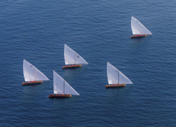 A step up from the 22ft Dhow is the 43ft Dhow sailing class. Still rigged with a single mast, the dhows are crewed by 10 to 14 sailors. In accordance with local tradition, the boats are built of wood and the length of the keel is fixed at 43ft. The mast and rigging is less traditional and has been upgraded with modern technology. This break from tradition is mainly due to safety reasons as the traditional wooden mast is too heavy and fragile to be used in racing. 43ft Dhow races are held over a distance of approximately 15 Nautical Miles. The race usually has between 80 and 100 dhows at the start line. The dhows race either in a straight line or a gybing course to the finish line near the Abu Dhabi Breakwater. The Championship hosted by Abu Dhabi Sailing & Yacht Club is comprised of 3 races throughout the year.